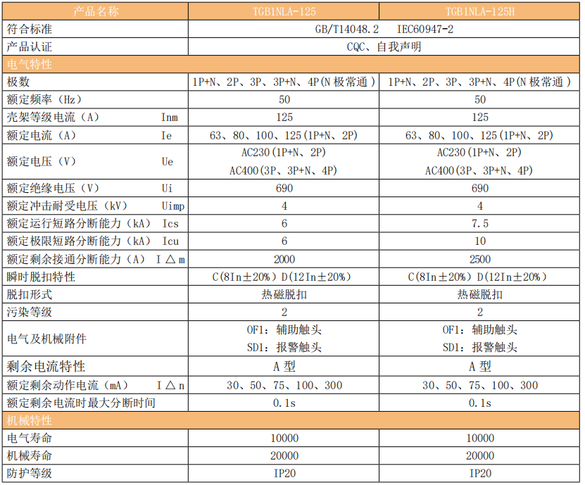 TGB1NLA125(H)系列剩余电流动作断路器(以下简称漏电断路器)主要适用于交流、额定电压 400V,额定电流63A至125A的电路中,当人身触电或电网泄漏电流超过规定值时,剩余电流动作断路器能在极短的时间内迅速切断电源,保护人身及用电设备的安全,并且有过载、短路、及在正常情况下作为线路的不频繁转换之用,广泛用于充电桩行业与含直流分量配电线路中。
